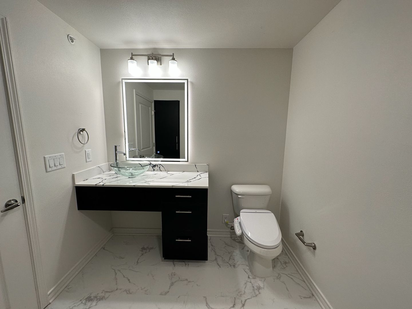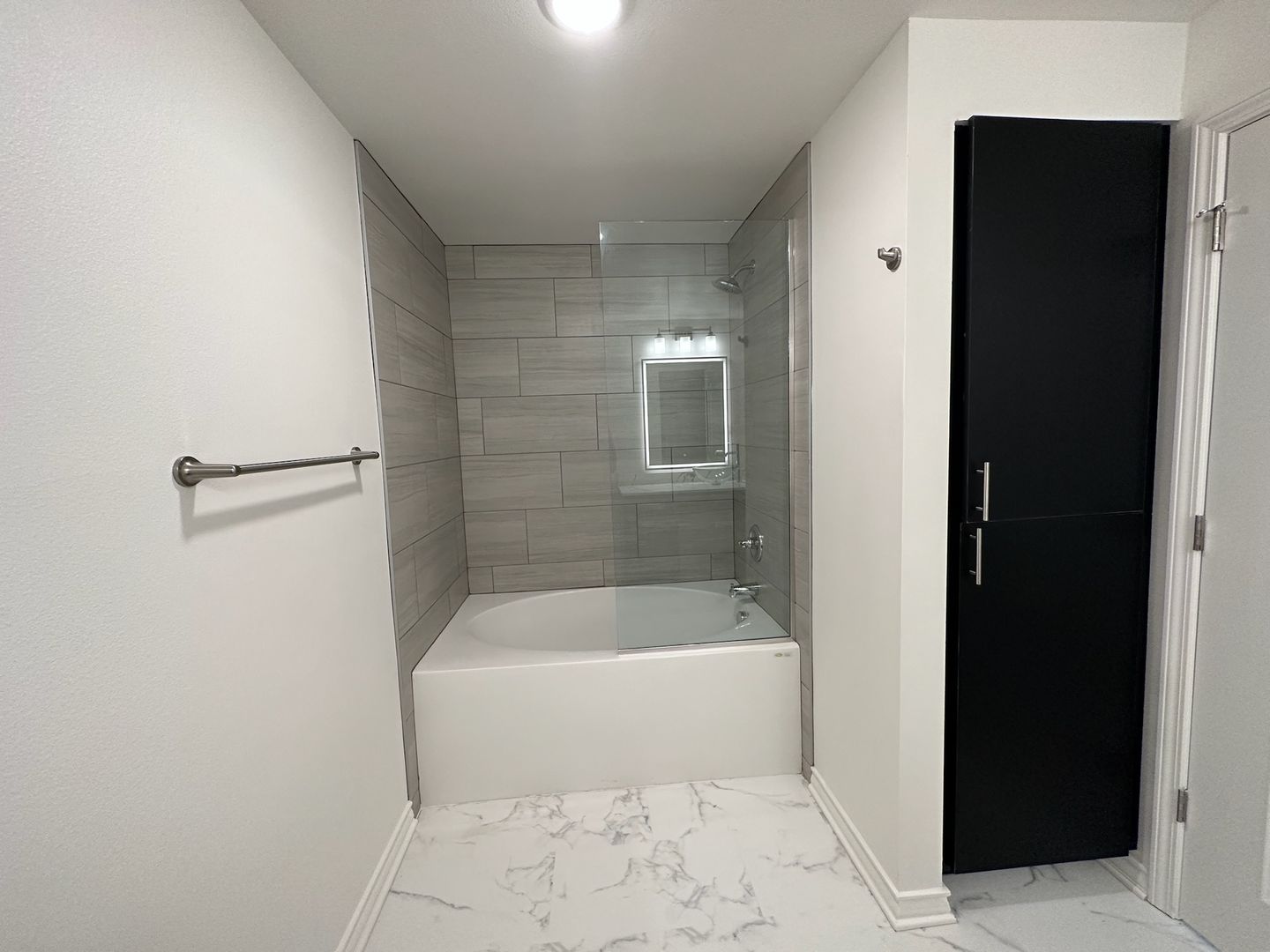 Black Cabinets, White Granite, Faux White Marble Look Flooring, Garden Tub/Shower, 2nd Floor Corner Apartment. Includes Electricity, High Speed Internet, Water, Valet Trash Collection, Preventative Pest Control, 24/7 Emergency Maintenance. Add $300 to rent for utility package for one occupant and $10 for each additional occupant. There is a holding fee of $250 once approved. This is an administrative fee, which is non-refundable.